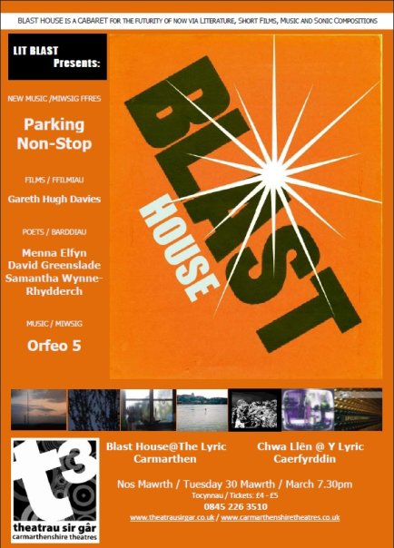 Parking Non-Stop performed at the Lyric Theatre in Carmarthen on the 30th of March 2010 as part of the second Blast House event. Blast House is a monthly series of multi media events billed as 'a cabaret for the futurity of now via Literature, Short Films, Music and Sonic Compositions'. |