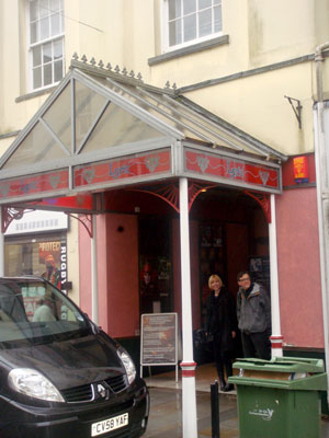 Zoë and Dewi outside the Lyric Theatre in Carmarthen