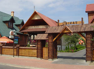 On other occasions, they may choose one of the town's more aesthetically pleasing resaurants Unikat (left) or Karczma (right), both of who specialize in fine local dishes of Zubr - the local European Bison, the largest European mammal, whose only surviving colony is in the nearby forest. |