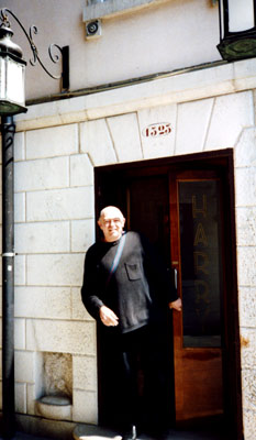 Alan leaving Harry's Bar, Venice, 12th April 2001 |