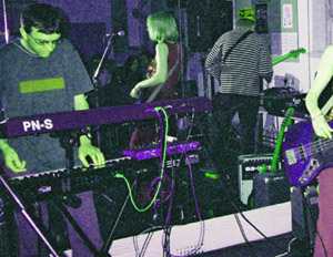 Above: Parking Non-Stop captured in performance at the Guildhall, Gloucester on 17th November 2001as part of the Ochre 7 festival's Galasphere 347 event |